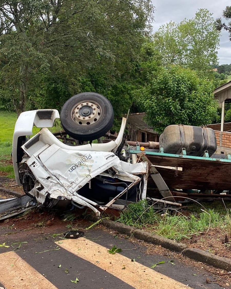 O motorista de um caminhão, que transportava uma carga de gás, morreu nesta manhã de quinta-feira (07) em um acidente de trânsito na PR 562.