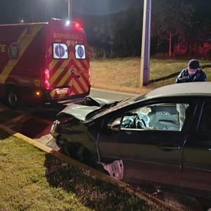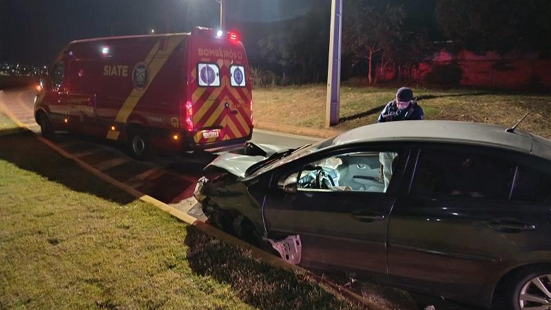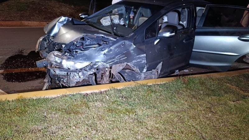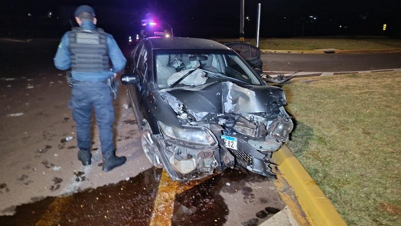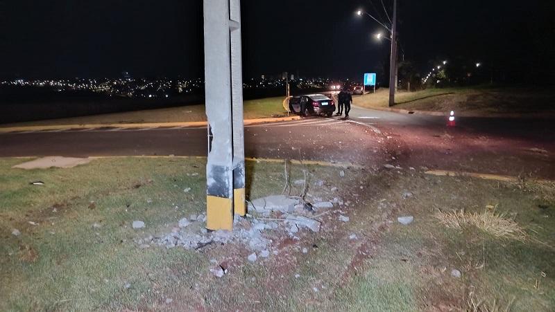 Segundo informações apuradas no local, o automóvel seguia em direção a Toledo quando o condutor não percebeu a rotatória de acesso ao bairro e acabou passando direto. O carro cruzou o canteiro central e colidiu contra um pilar de concreto que sustenta a placa de inauguração do trevo. Na sequência, ainda atingiu de raspão um poste de iluminação pública, só parando cerca de 20 metros adiante.