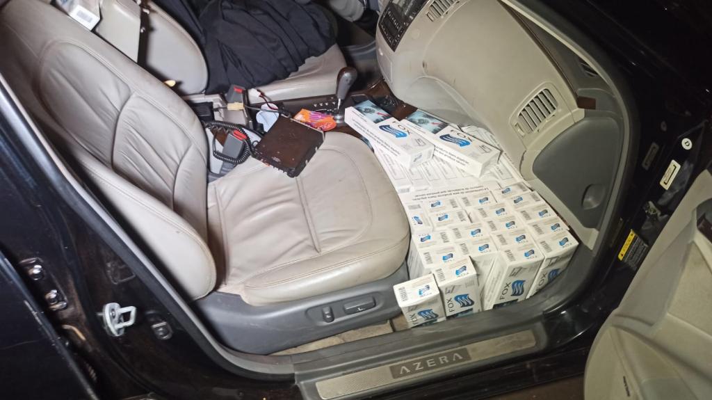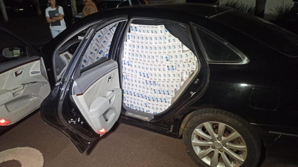Após ele ser identificado, os policiais verificaram o veículo e nele foram encontradas cerca de 25 caixas de cigarros, dois rádios comunicadores e R$ 100.