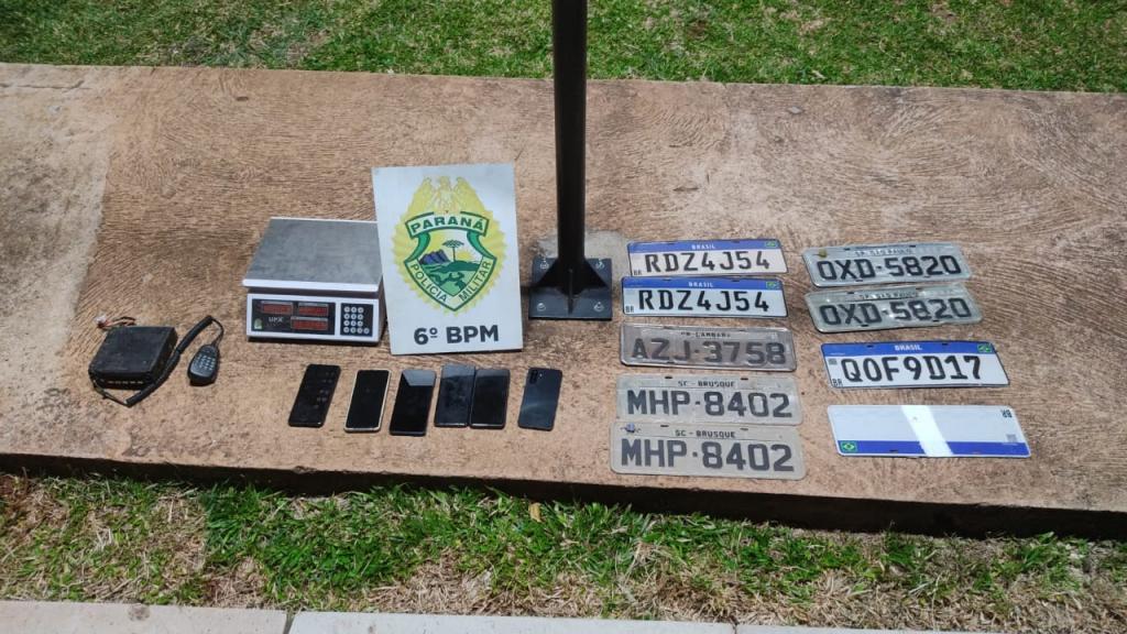 No interior da residência, foram localizados 1.029,324 quilos de maconha, além de diversos objetos ligados à atividade criminosa. Entre os materiais apreendidos estavam uma caminhonete Mitsubishi L200 com registro de furto no estado do Rio Grande do Sul, um Volkswagen Gol de cor preta, um Volkswagen Voyage de cor branca, um motor da montadora Jeep, caixas de câmbio, rádio comunicador, balança, placas veiculares e aparelhos celulares.