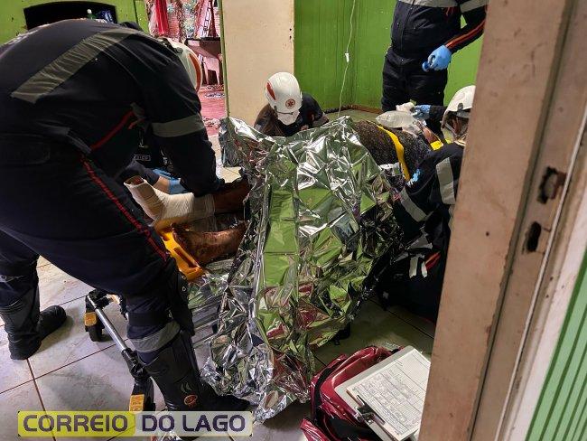 O piso cedeu inesperadamente, abrindo o buraco e provocando a queda. Por sorte, familiares estavam presentes na residência no momento do acidente, o que permitiu o acionamento rápido dos serviços de emergência.