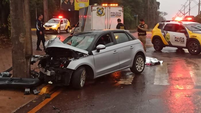 Um acidente tirou a vida de uma mulher, na madrugada deste domingo (15), em Toledo. Eram por volta das 05h30, na rotatória da Avenida Ministro Cirne Lima com Rua Guarani, região da Vila Becker, quando um veículo Audi, com placas Mercosul, ocupado por 06 pessoas, ao passar pela rotatória o condutor, de 18 anos, perdeu o controle e atingiu frontalmente um poste de energia elétrica.