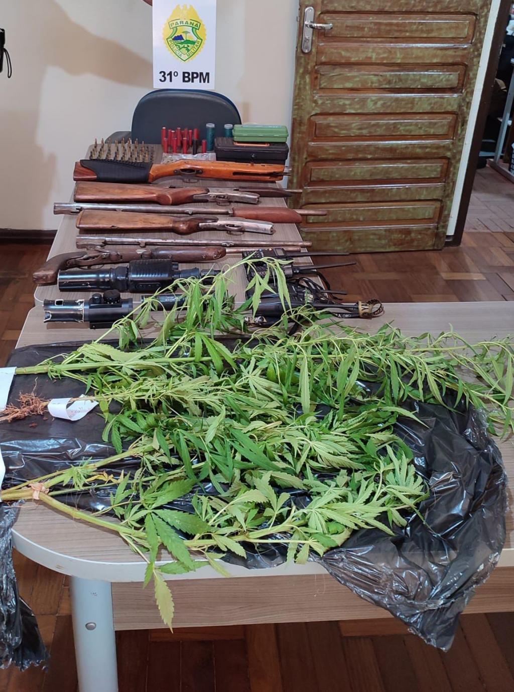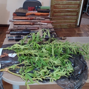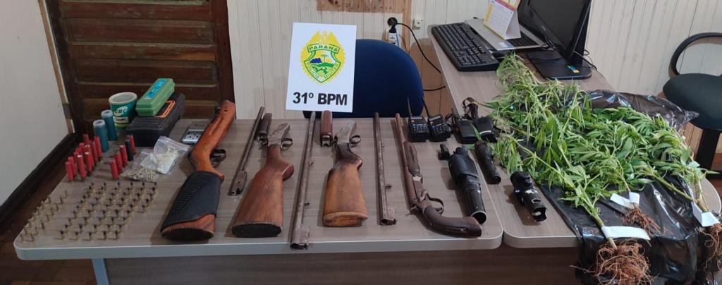 Foram localizadas também 4 espingardas, sendo duas de cal .36, uma de cal .32 e uma de cal .22. Diante dos fatos, a proprietária da residência foi encaminhada, juntamente com os objetos apreendidos, à Delegacia da Policia Civil de Nova Aurora.