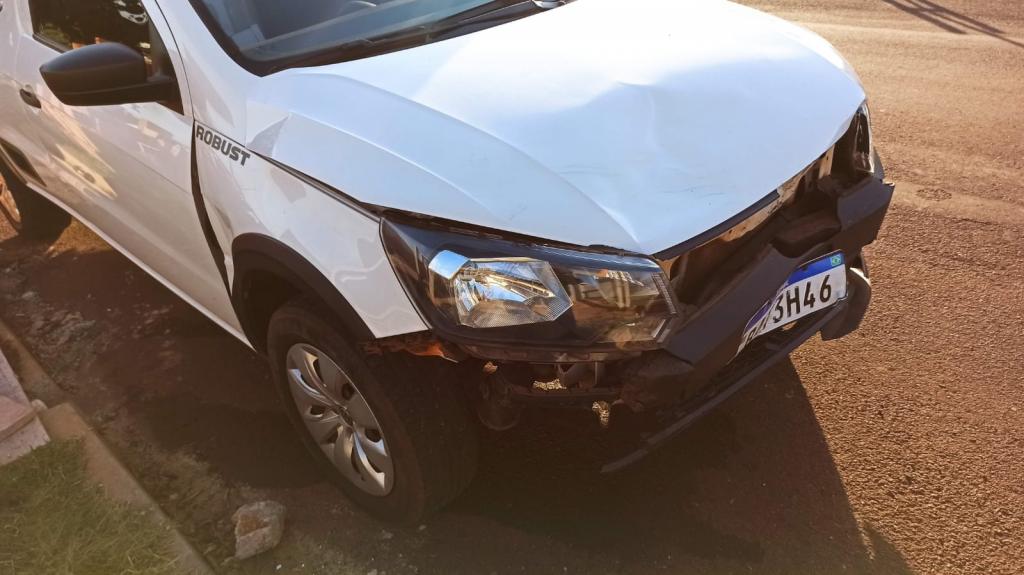 A caminhonete Robust e a mot Biz conduzida por uma mulher de 44 anos colidiram na manha de hoje no cruzamento da rua Matias Fuhr com rua Américo Ângelo Sartori no bairro São Francisco em Toledo.