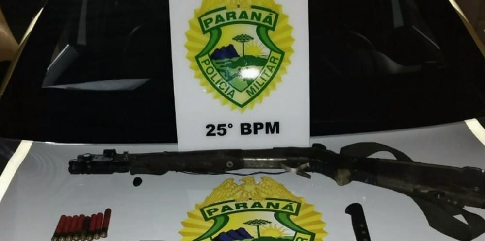 Durante as buscas, os agentes encontraram uma faca, possivelmente usada no crime, espingarda calibre 36, munições e documentos.