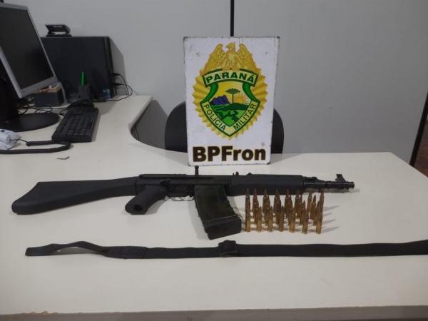 Ao entrevistar uma passageira, esta repassou informações conflitantes aos policiais, sendo assim os policiais realizaram uma vista corporal na passageira sendo encontrando em suas costas uma arma de fogo do tipo fuzil calibre .556 marca "Czeeh Small Arms", com 1 um carregador municiado com 29 munições de mesmo calibre e de diversas marcas.