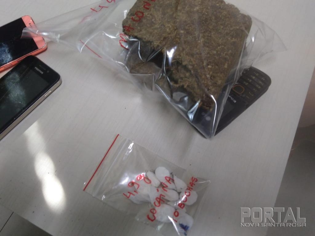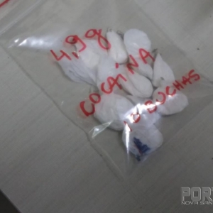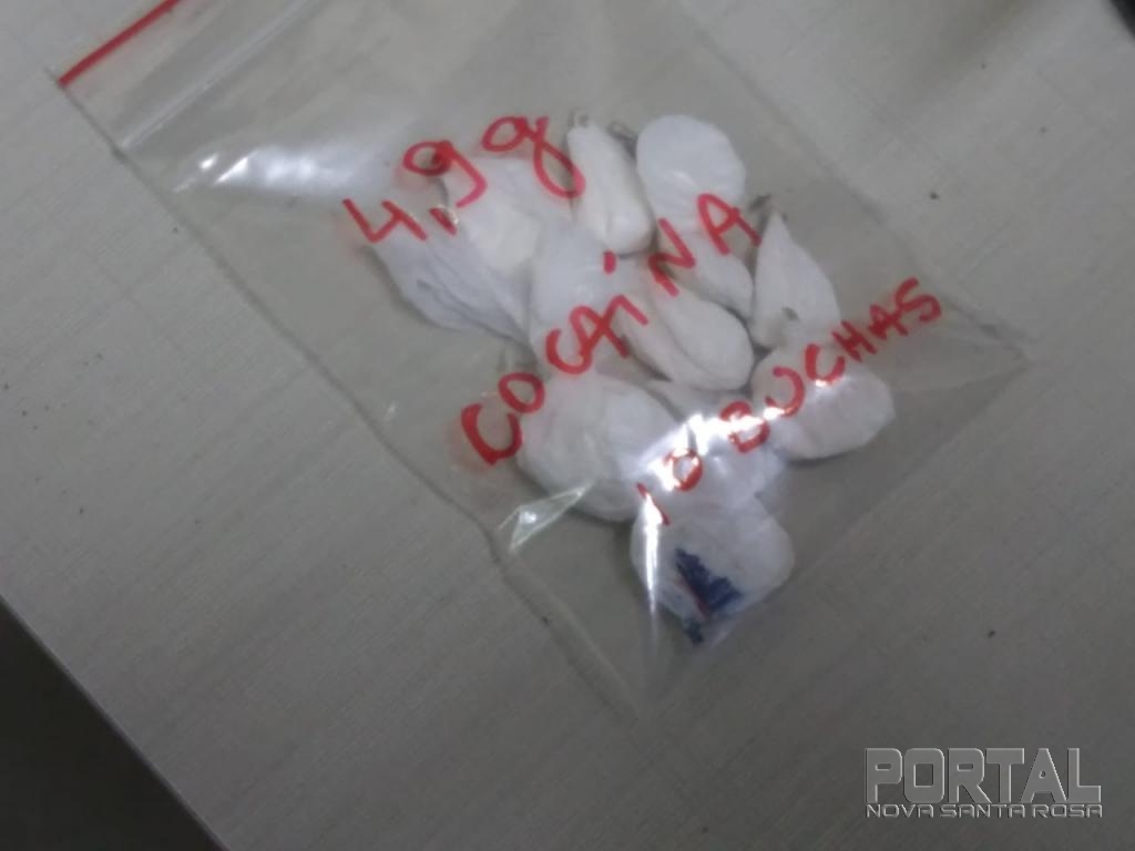 No quarto da mesma foi encontrado 10 buchas de cocaína que pesou 4,9 gramas, pronta para a venda.