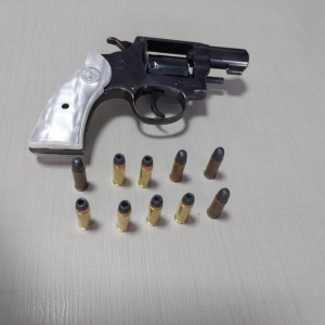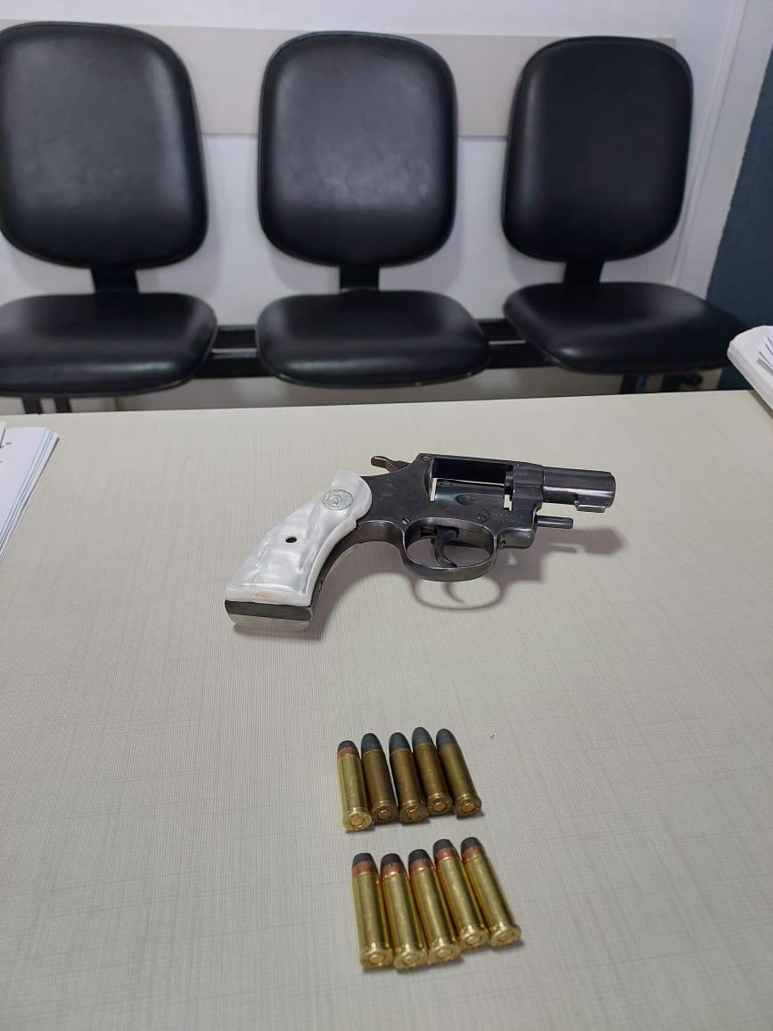 Diante disso, foi realizado a busca veicular e encontrado dentro do console central um revólver calibre .32 marca Taurus desmuniciado.