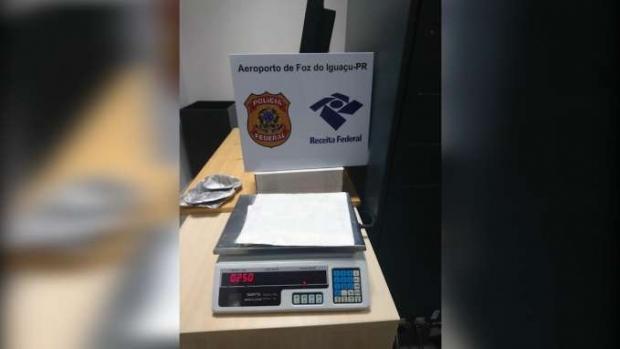 A mulher de 27 anos foi presa transportando haxixe e cocaína no Aeroporto Internacional de Foz do Iguaçu, no início da noite de domingo (26).