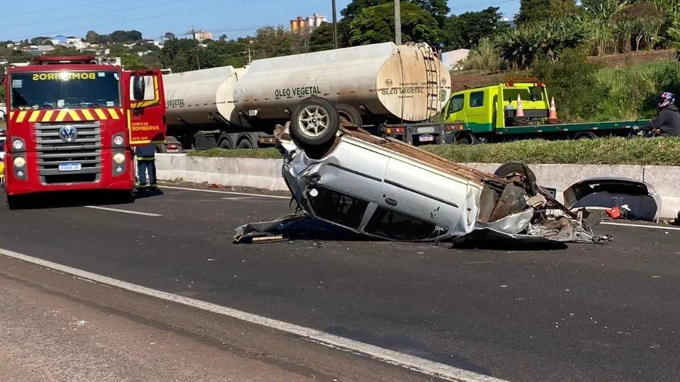 Conforme informações apuradas, ela teria perdido o controle da direção após colidir contra um caminhão. Com o impacto, o carro foi projeto em direção a mureta de proteção e capotou na sequência, ficando completamente destruído e parando com as quatro rodas para cima.