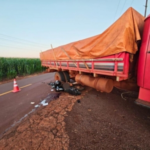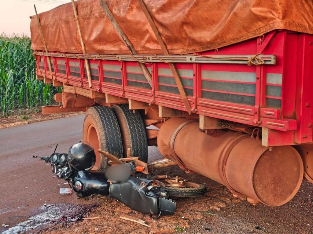 A colisão aconteceu na tarde de sexta-feira (20), quando os dois veículos seguiam em sentidos opostos pela via. Durante o trajeto, o caminhão realizou uma conversão à esquerda, momento em que ocorreu a batida transversal com a motocicleta.