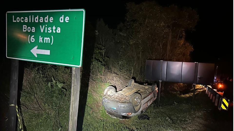 Segundo a PRF (Polícia Rodoviária Federal), a Fiat Strada, de Guamiranga, cruzava a pista para acessar uma via local e obstruiu a passagem do caminhão MB, de Prudentópolis, que estava vazio e seguia sentido Ponta Grossa. Após a batida, a picape foi projetada para fora da pista e parou com as rodas para cima.