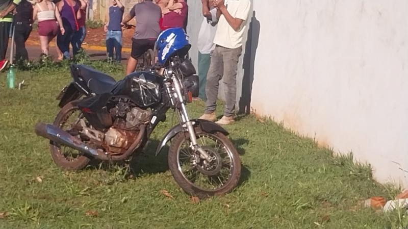A violenta colisão aconteceu praticamente em frente a Unidade de Saúde do bairro, e envolveu uma motocicleta e um GM/Astra.