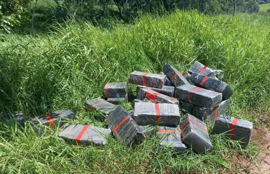 Os agentes fizeram buscas na região e localizaram vários pacotes de drogas jogados no meio do mato, à beira da estrada.