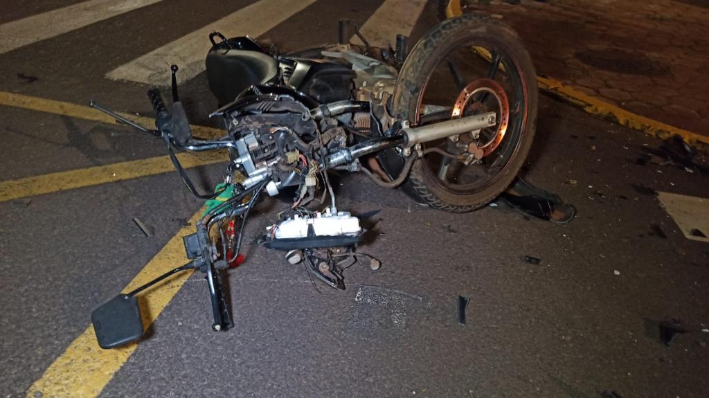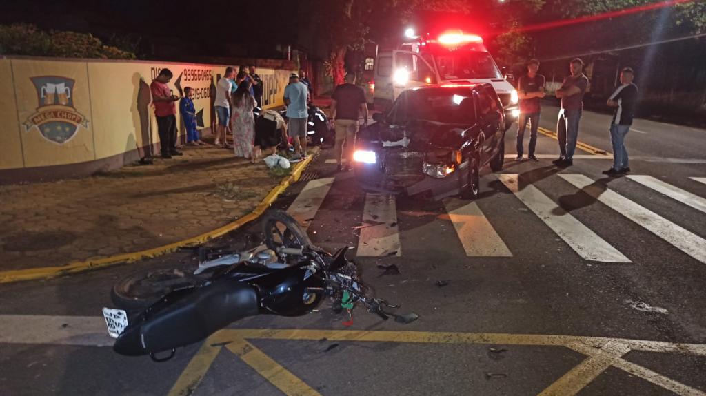 O veículo Fiat Uno e uma moto Honda CG Titan de 150 cilindradas placa de Toledo conduzida por uma mulher de 26 anos colidiram na noite de ontem (10) na Rua São João esquina com General Estilac Leal área central de Toledo.