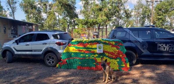 Policiais Militares do Pelotão de Operação com Cães do BPFRON - Batalhão de Polícia de Fronteira durante patrulhamento na zona rural de Pato Bragado, nesta sexta-feira localizou um veículo parado próximo a uma mata.