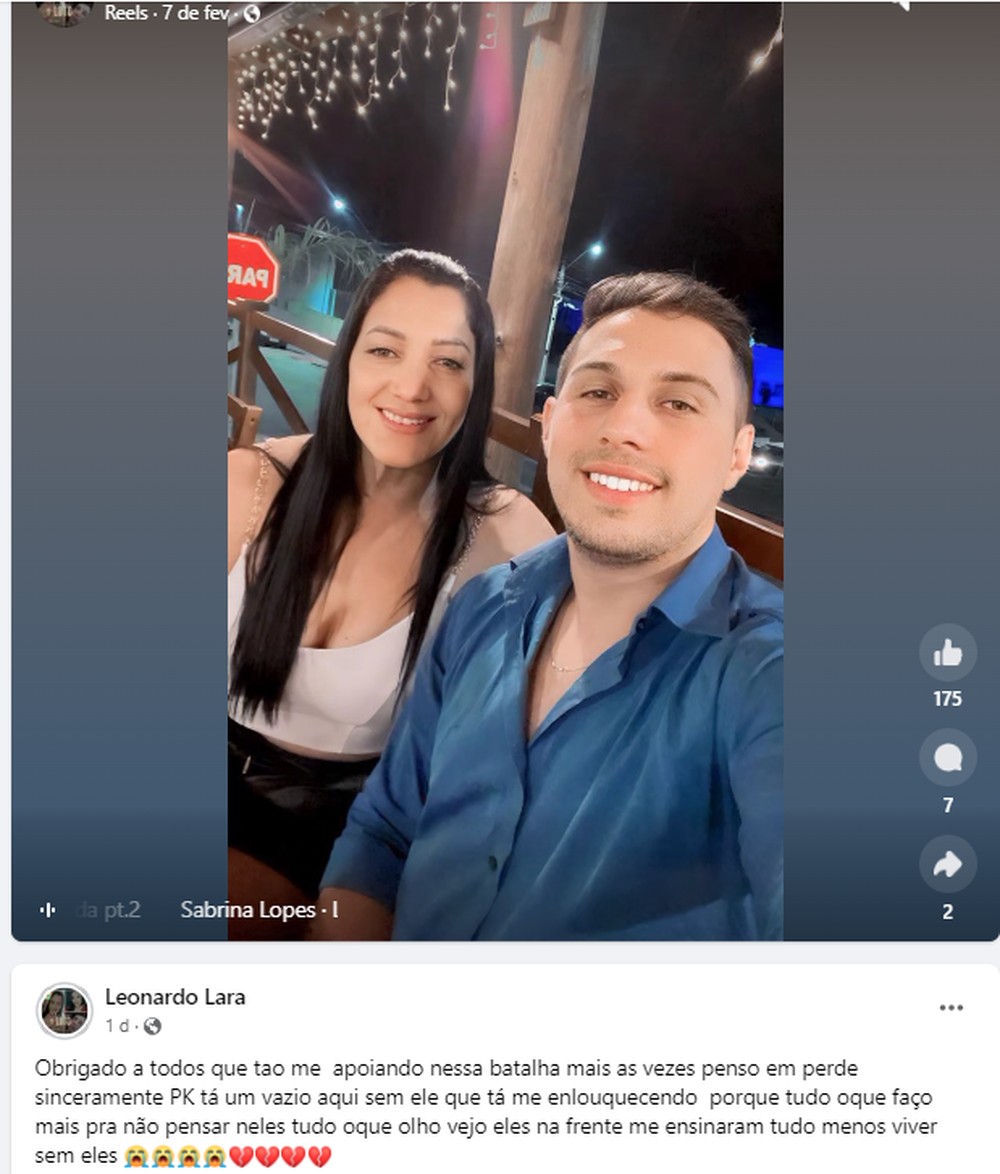 "Obrigado a todos que estão me apoiando nessa batalha, mas às vezes penso em perder, sinceramente, porque está um vazio aqui sem eles que está me enlouquecendo, porque tudo o que faço mais, para não pensar neles, tudo o que olho, vejo eles na frente. Me ensinaram tudo, menos a viver sem eles", publicou.