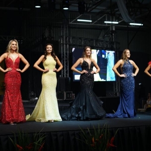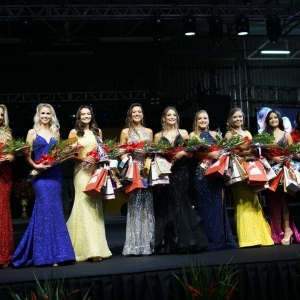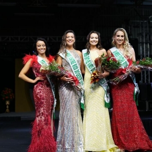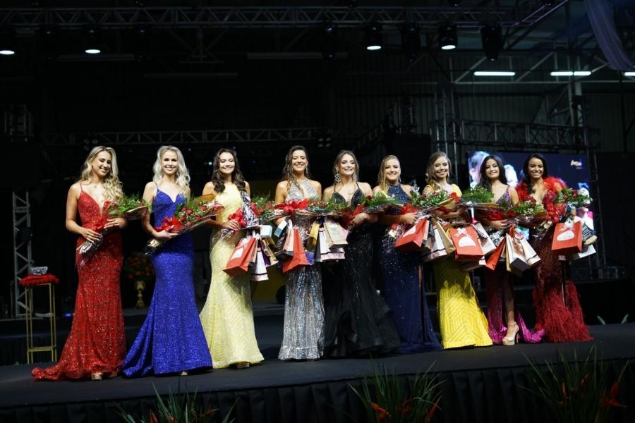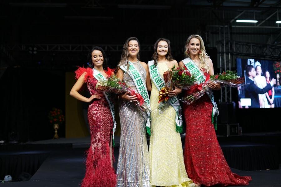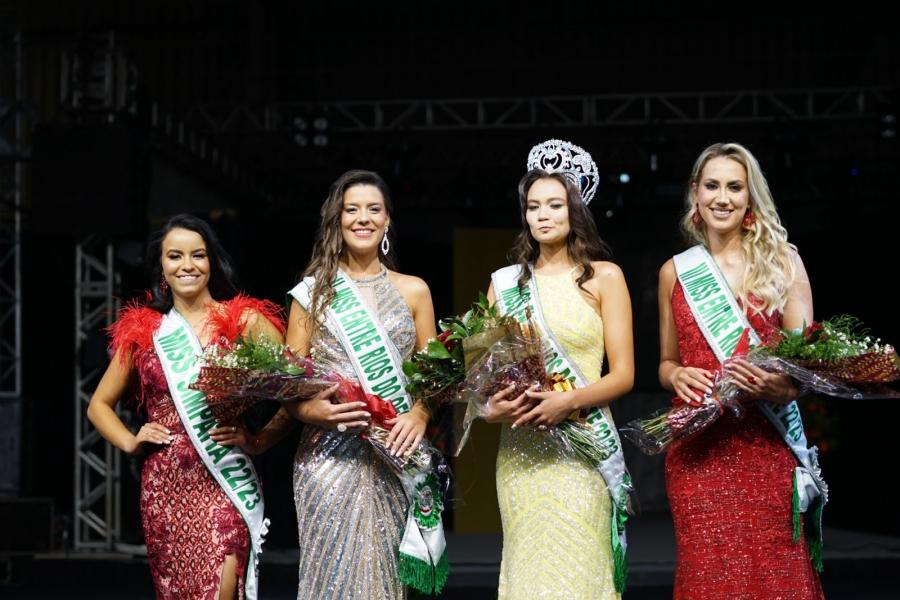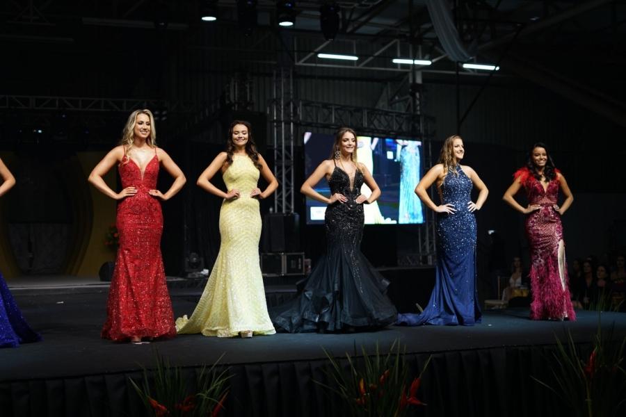 As jovens desfilaram em traje de gala e de banho. O Concurso Miss Entre Rios do Oeste 2022 faz parte das comemorações alusivas ao aniversário de 29 anos de emancipação político-administrativa do município de Entre Rios do Oeste.