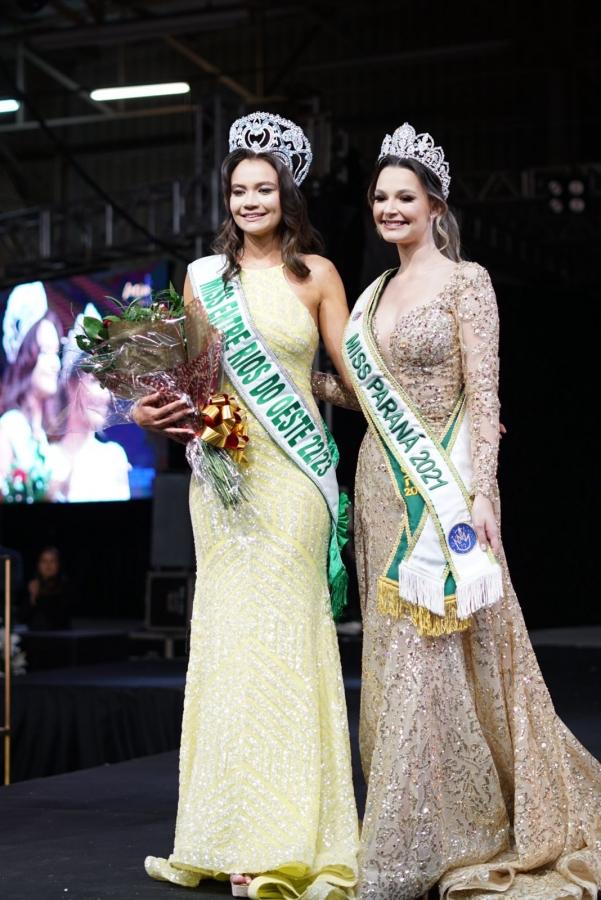 Natalia Wurfel Rambo recebeu a coroa das mãos de Eduarda Van de Sand, Miss Paraná 2021 e candidata à Miss Brasil Terra 2022.