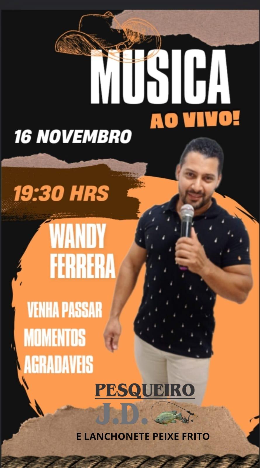 No sábado dia 16 de novembro, atendimento das 14h00 às 23h00 com MÚSICA AO VIVO com Wandy Ferrera partir das 19h30, venha passar momentos agradáveis em família e degustar nossas deliciosas porções,