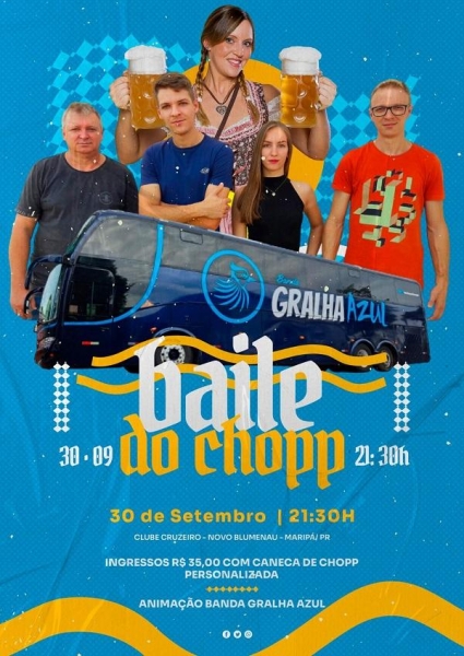 Será realizado neste sábado, dia 30, no Clube Cruzeiro de Novo Blumenau, em Maripá, o Baile do Chopp.