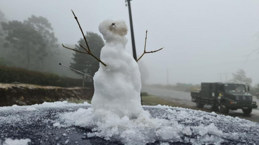 Em São Joaquim, por volta das 6 horas a mínima chegou a 1,6ºC. Já Urupema, a menor temperatura registrada foi - 0,68ºC, às 10 horas. Ao longo do dia, a expectativa é de que os termômetros registrem marcas ainda menores. Com isso, a condição de neve persiste até a madrugada de terça-feira (29).