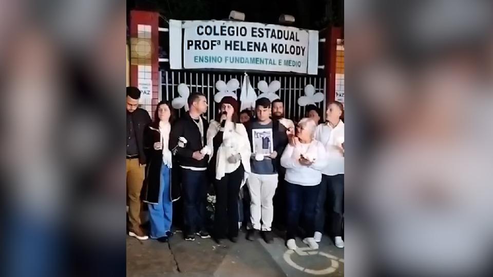 "Amem os seus filhos, deem atenção a eles... Não percam tempo com brigas a gente não sabe o dia de amanhã", reflete. Velas, flores e balões brancos foram levados até a frente do colégio.