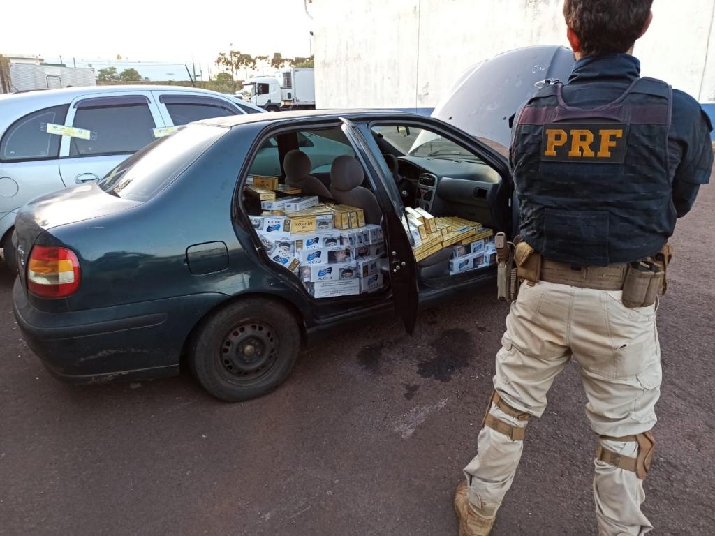 Durante a Operação Égide, policiais rodoviários federais abordaram um motorista que conduzia um Fiat Siena, lotado com cerca de 10 mil maços de cigarros contrabandeados do Paraguai.