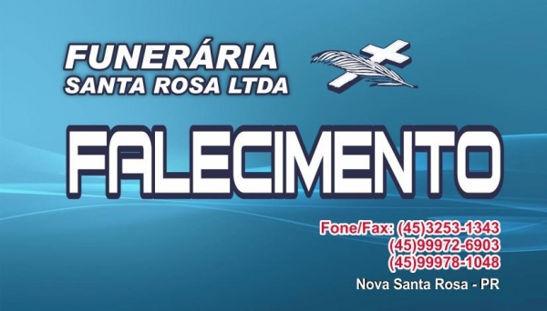 O corpo será velado a partir das 7h00 de amanhã (26), na Igreja de Cristo de Nova Santa Rosa e, a partir das 10h00, haverá culto de corpo presente, e logo após o sepultamento no cemitério municipal.