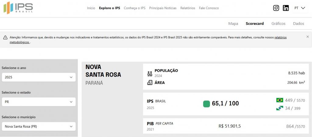 Os dados completos de Nova Santa Rosa estão disponíveis no seguinte arquivo: Scorecard Nova Santa Rosa (PR) - IPS Brasil 2025, que pode inclusive ser baixado e compartilhado.