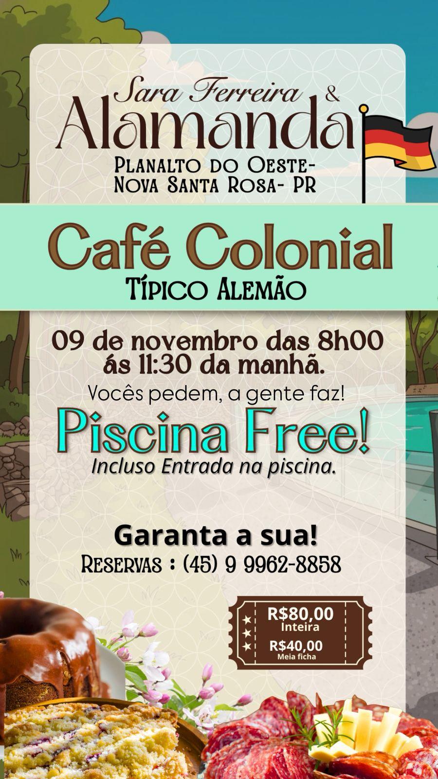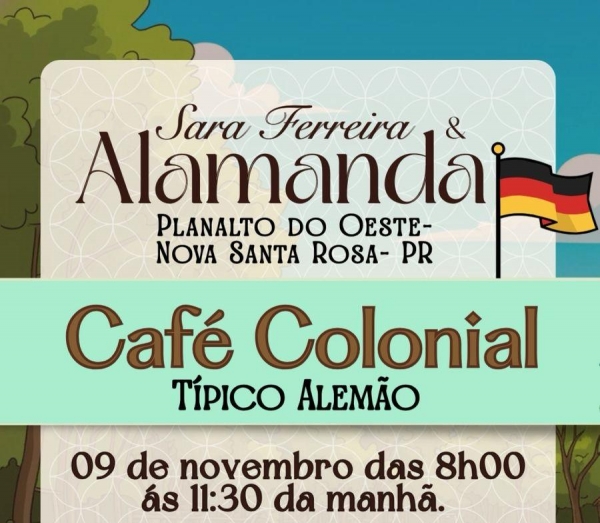 Neste domingo, 9 de novembro, das 8h às 11h30 da manhã, a Alamanda, em parceria com Sara Ferreira – Sabores da Vida, realiza o primeiro Café Colonial Típico Alemão em Planalto do Oeste, Nova Santa Rosa.