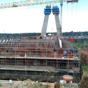 Do lado paraguaio, por sua vez, a estimativa é que feche março com 88 metros de altura do mastro concretado. No apoio 01, informa o boletim, houve a continuidade da execução do segundo trecho concretado, de 20,50 metros de largura e 28,12 metros de comprimento. Feito concreto armado, tem peso aproximado de 1.100 toneladas.