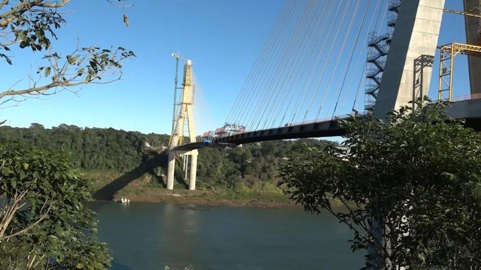 Faltam apenas 17 metros para fechar o vão central da estrutura. Do lado brasileiro, a Ponte da Integração já conta com as 18 aduelas, as peças feitas de metal e concreto que dão forma a via suspensa, enquanto no Paraguai foram instaladas 17 peças.