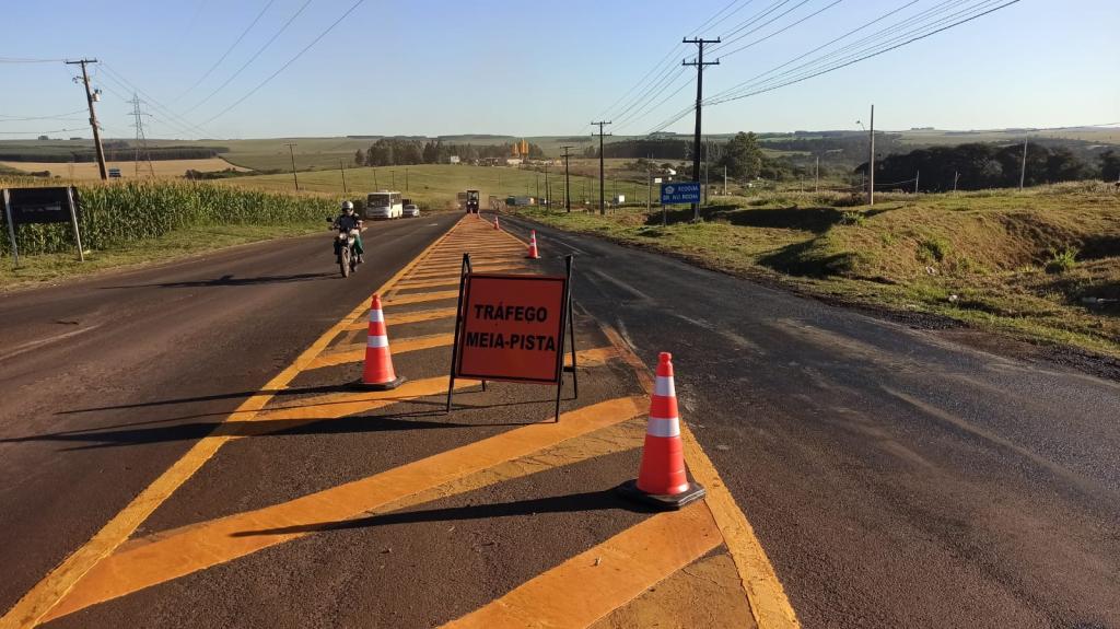 Na saída de Toledo para Ouro Verde um trecho da rodovia está sendo liberada para o tráfico de veículos apenas em meia pista, a obra está sendo executada pela CS Costa Oeste Consórcios, segundo a engenheira civil Tainá não vai ser um recape completo apenasa revitalização irá acontecer nos ponto críticos da pista.
