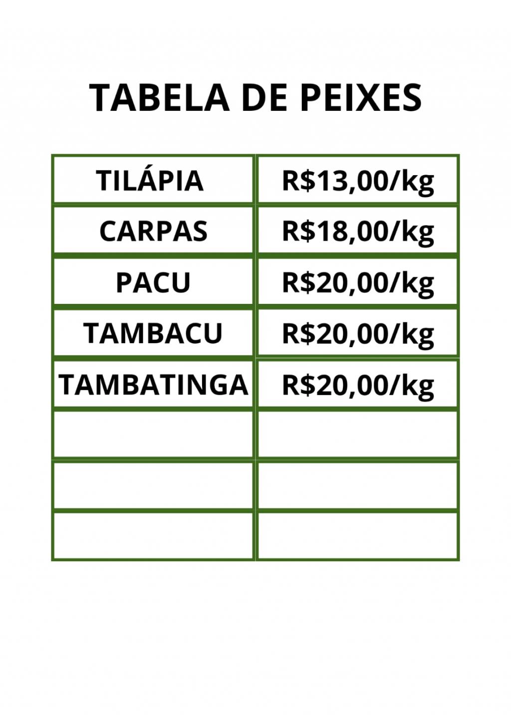 - área para pesca (no momento não estarão realizando limpeza dos peixes, mas há um espaço reservado para a limpeza deles);