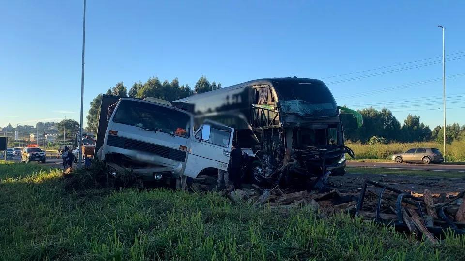 Um acidente entre um ônibus e um caminhão foi registrado na manhã desta quinta-feira (30), na BR 277, em Cascavel. A batida aconteceu entre o posto da Polícia Rodoviária Federal e o Show Rural Coopavel.