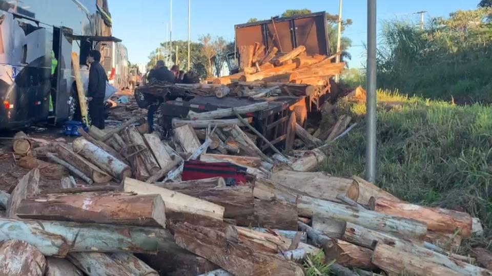 As informações são de que o ônibus seguia pela rodovia BR 277, em direção à Cascavel, quando acabou batendo na traseira do caminhão carregado com toras de madeira, que tentava acessar a pista.
