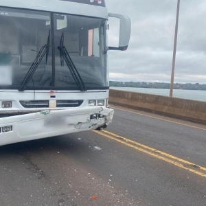 Ônibus de banda de Toledo se envolve em acidente na Ponte Ayrton Senna, veja o vídeo