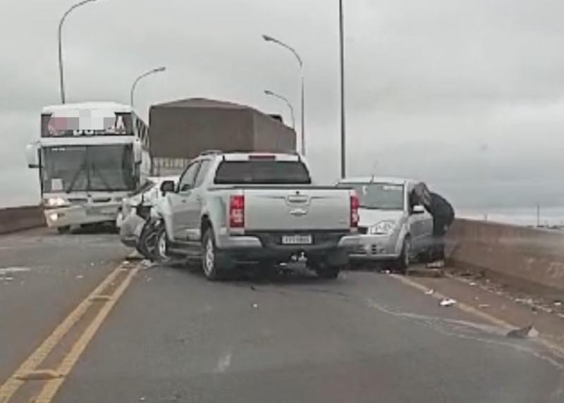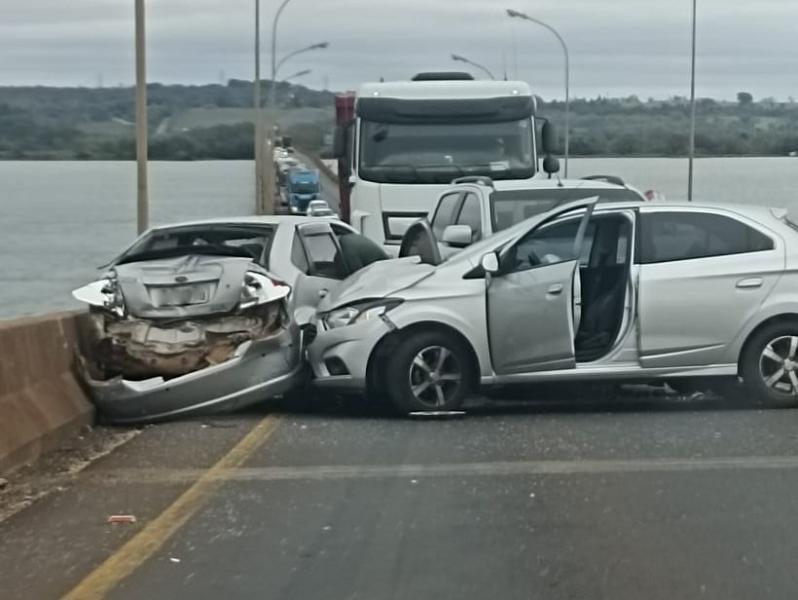 Um acidente foi registrado na tarde desta quinta-feira (08), sobre a Ponte Ayrton Senna, que liga Guaíra (PR) à Mundo Novo (MS).