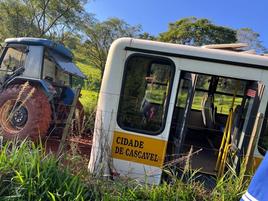 Conforme informado, o ônibus que realizava o transporte seguia pela estrada, quando devido ao barro, atolou e chegou a atingir um barranco. Um trator precisou ser usado para retirar o veículo.