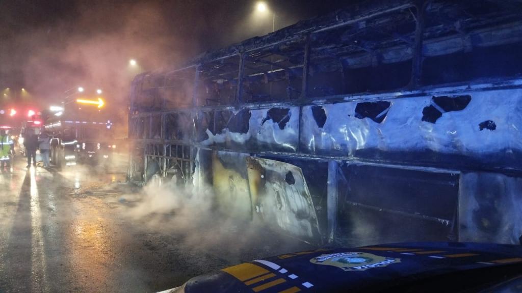 Na noite de terça-feira (25), um grave sinistro de trânsito ocorreu na BR-376, em Guaratuba, Paraná. Um ônibus foi completamente consumido por um incêndio, causando a interdição parcial da rodovia. O sinistro ocorreu no km 668,3 da rodovia, sentido SC/Curitiba.