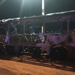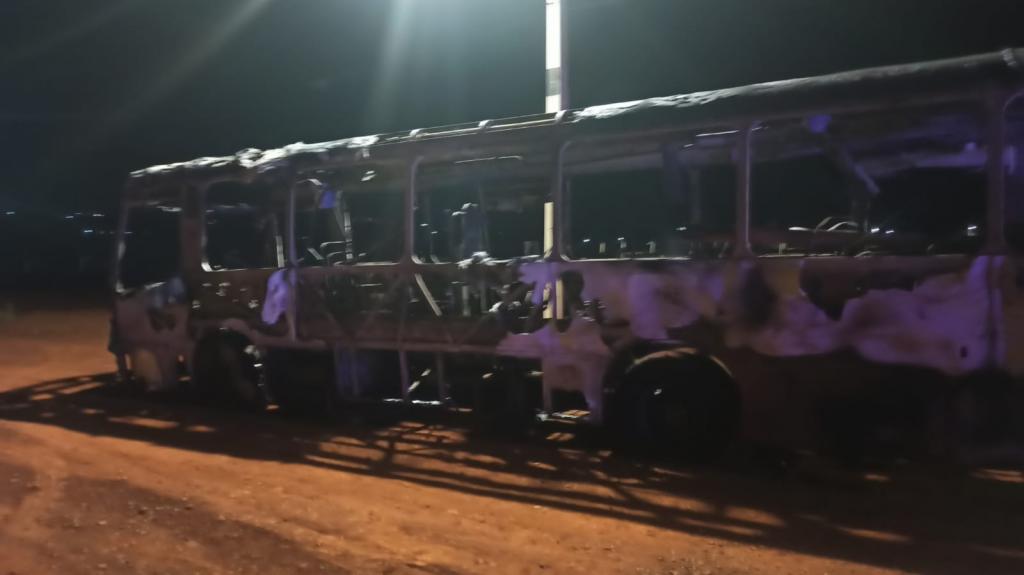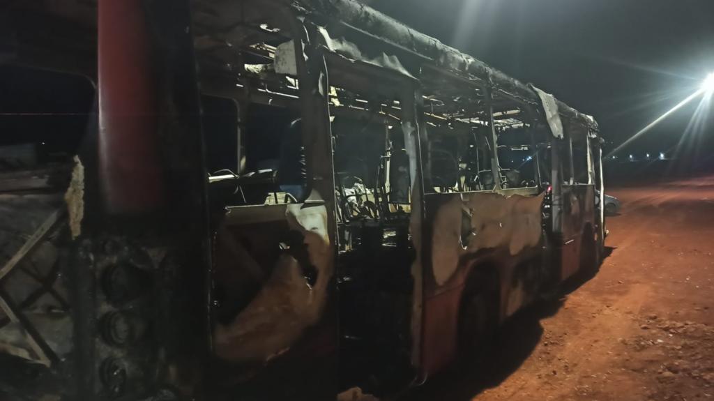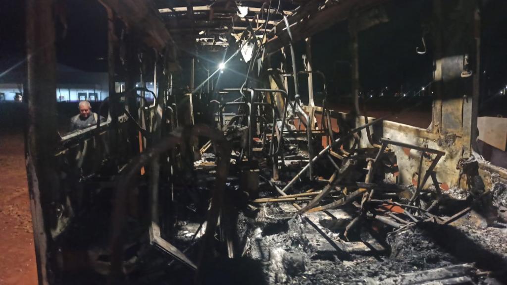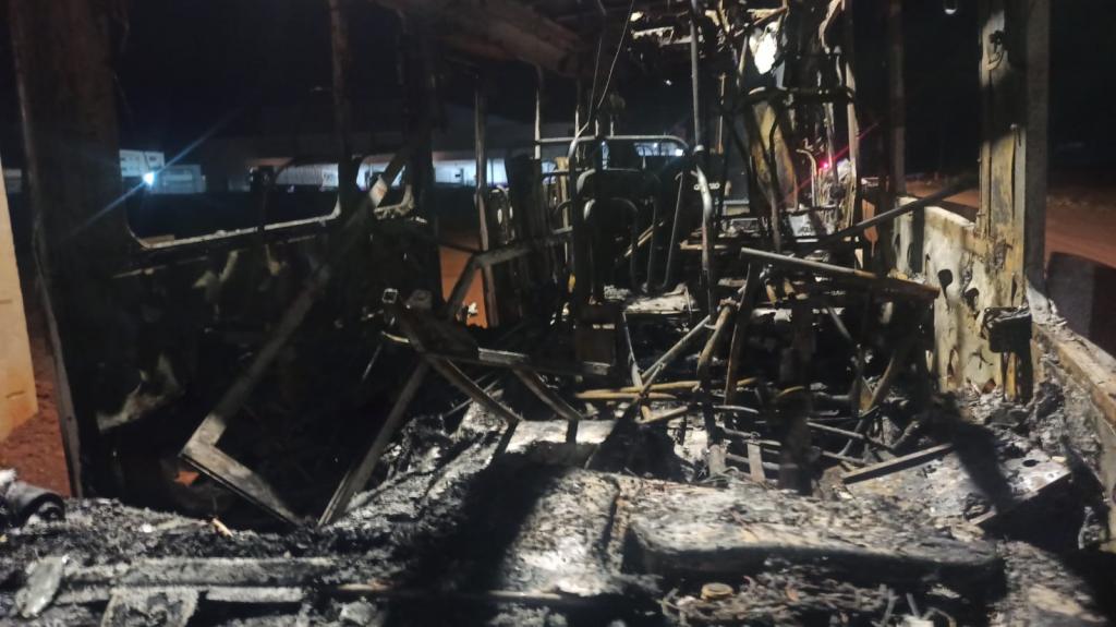 Um ônibus de transporte coletivo urbano de Toledo ficou totalmente destruído por um incêndio na noite desta segunda-feira nas margens da rodovia PR 182 que liga Toledo ao município de Palotina em frente ao Bio Park.