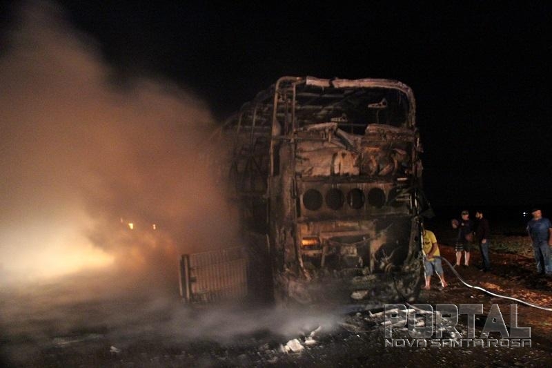 As chamas destruíram o ônibus rapidamente, um caminhão pipa de Maripá e um de Nova Santa Rosa chegaram rapidamente e controlaram as chamas, a Polícia Militar de Nova Santa Rosa foi até o local controlar o trânsito.