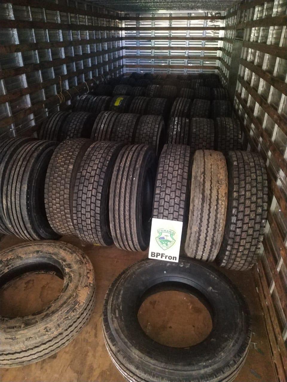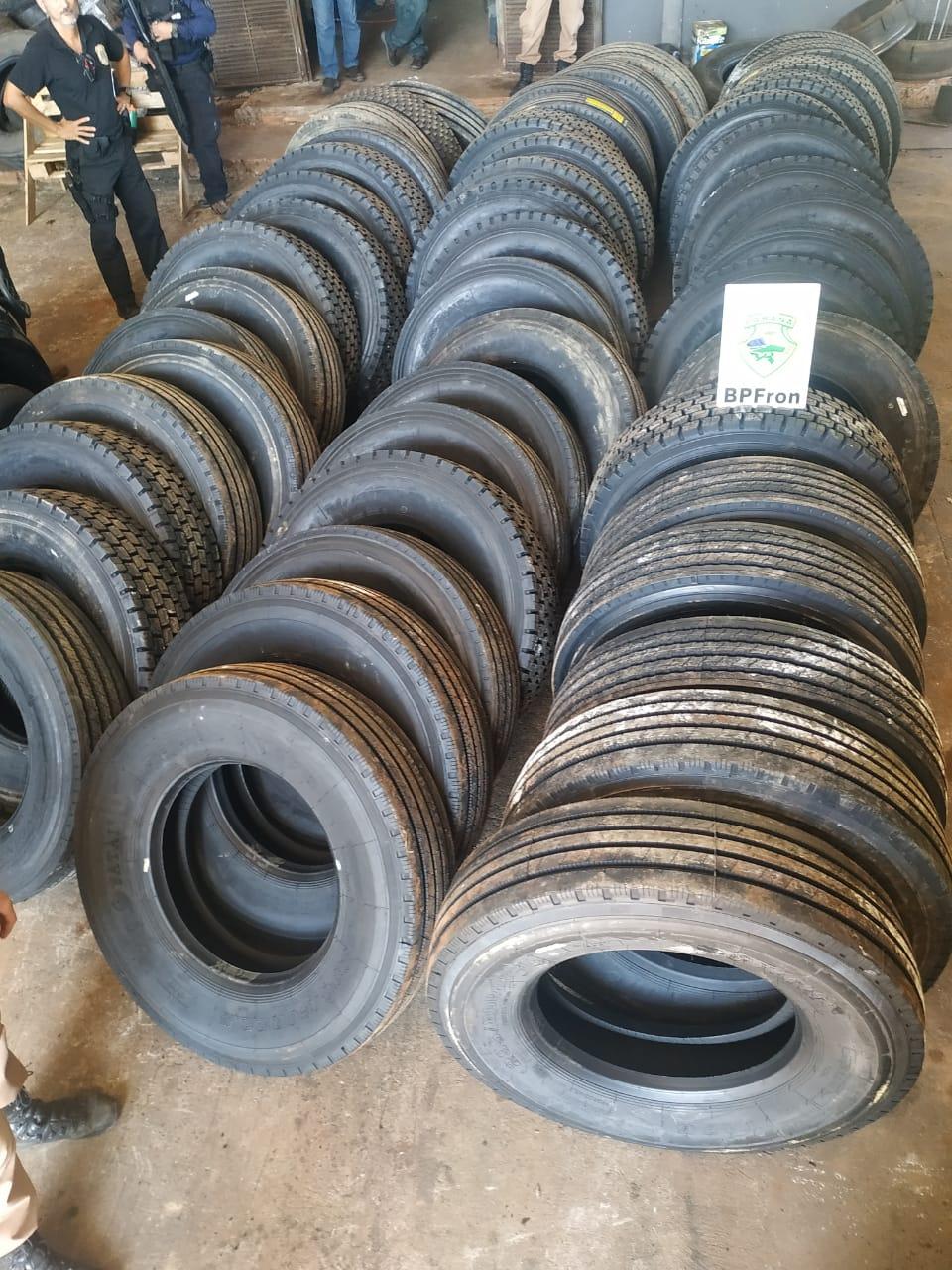 Em ato continuo na avenida DR. Luis Passos, Bairro Pilar Parque Campestre em um estabelecimento localizado 50 pneus de caminhão de origem estrangeira no qual o responsável pelo estabelecimento, não possuía nota fiscal dos referidos pneus.