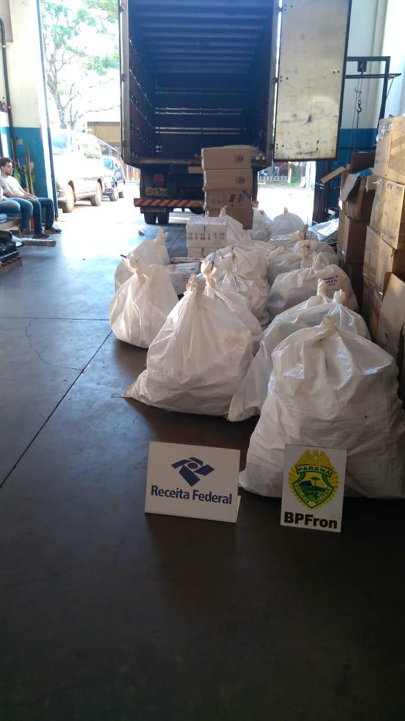 Nesta quinta-feira (07), Policiais Militares do BPFron - Batalhão de Polícia de Fronteira, durante a Operação Sul, desenvolvida em conjunto com equipes da Receita Federal e Polícia Federal, foi realizado abordagem a estabelecimentos na Vila Portes em Foz do Iguaçu, no qual foram apreendidos aproximadamente 70 caixas de cigarros, 42 volumes de mercadorias diversas e 12 pneus de carro de origem estrangeiras.