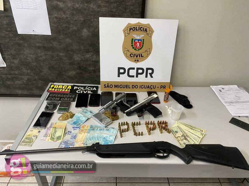 A operação visava o cumprimento de mandados de busca e apreensão, em residências localizadas na Favela da Sanepar e no Bairro Floresta, em São Miguel do Iguaçu, e também na região da Baixada Amarela, no município de Itaipulândia.