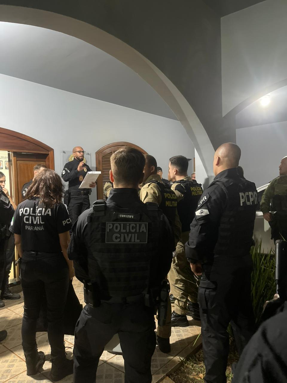 Ao todo, estão sendo cumpridos 8 mandados de busca e apreensão e 9 mandados de prisão. A ação conta com o apoio da Polícia Militar do Paraná e também com a atuação de cães de faro da Polícia Civil, que auxiliam nas buscas.