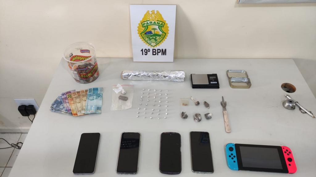 No local, a Polícia Militar também encontrou uma balança de precisão, dinheiro trocado, celulares e diversos objetos que podem estar ligados à atividade criminosa, como materiais utilizados para preparo e embalagem das drogas.