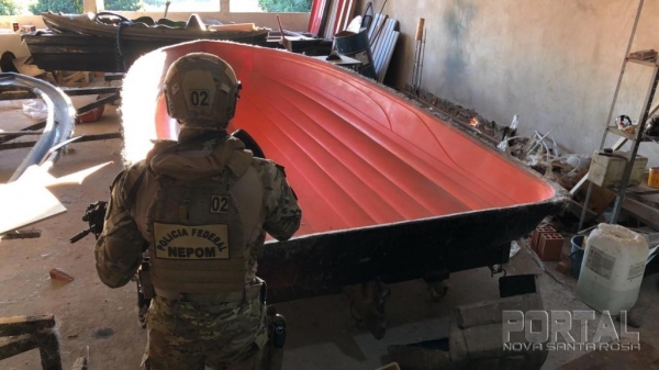Em Guaíra, foram apreendidos 2 moldes para fabricação de lanchas rápidas utilizadas pelos criminosos.