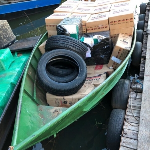 Foram aprendidos no local 01 Van e 02 embarcações carregadas com aproximadamente 150 caixas de cigarros, dois volumes de inseticidas e 04 pneus contrabandeados do Paraguai, um prejuízo de aproximadamente R$ 600.000,00 aos criminosos.